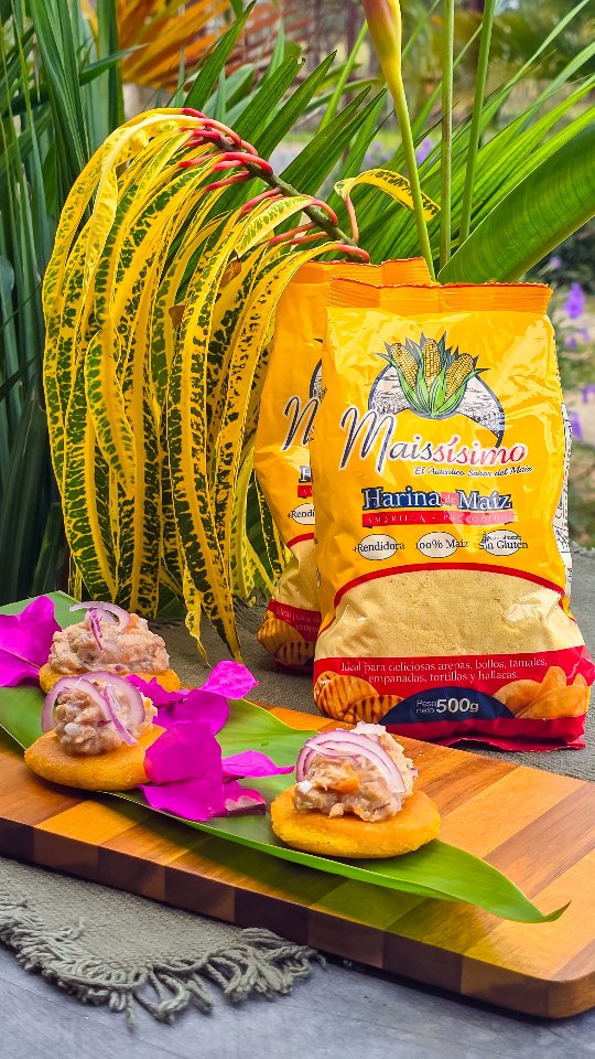 - En un recipiente o plato hondo vierte el agua tibia, sal al gusto y la harina Maissísimo para integrar y crear una masa consistente. Después hacemos pequeñas bolitas y aplastamos para formar discos de 5cm aproximadamente.